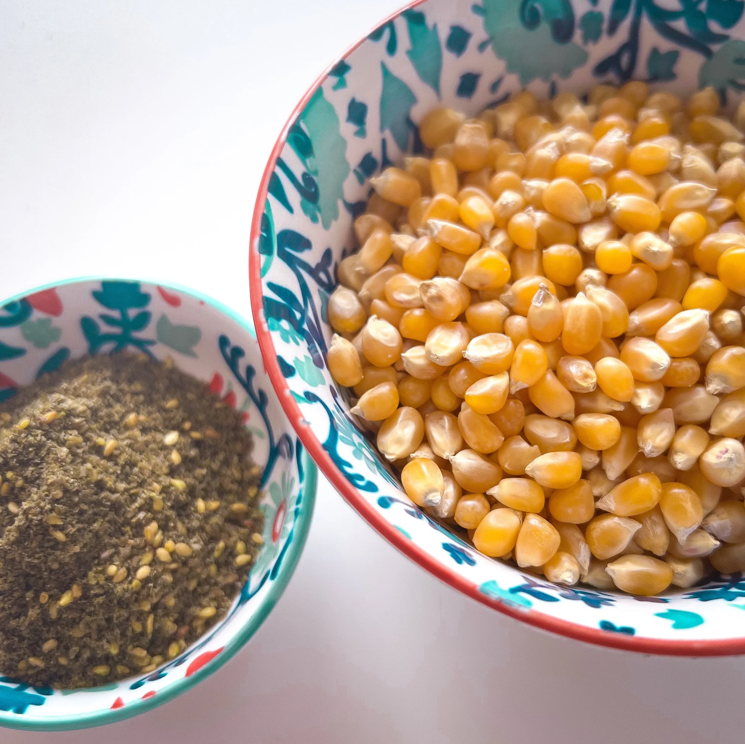 If you like popcorn and you adore za’atar, then this recipe is for you! My husband makes popcorn weekly as healthy snack, and one day he had a creative idea to spice things up a bit by adding a sprinkle of za’atar to it. Za’atar is one of our all-time favorite spice mixes to cook and bake with, so this culinary twist seemed obvious. The flavors of za’atar mixed with the lightly salted popcorn is savoury with a little bit of tang. It’s a must try!
